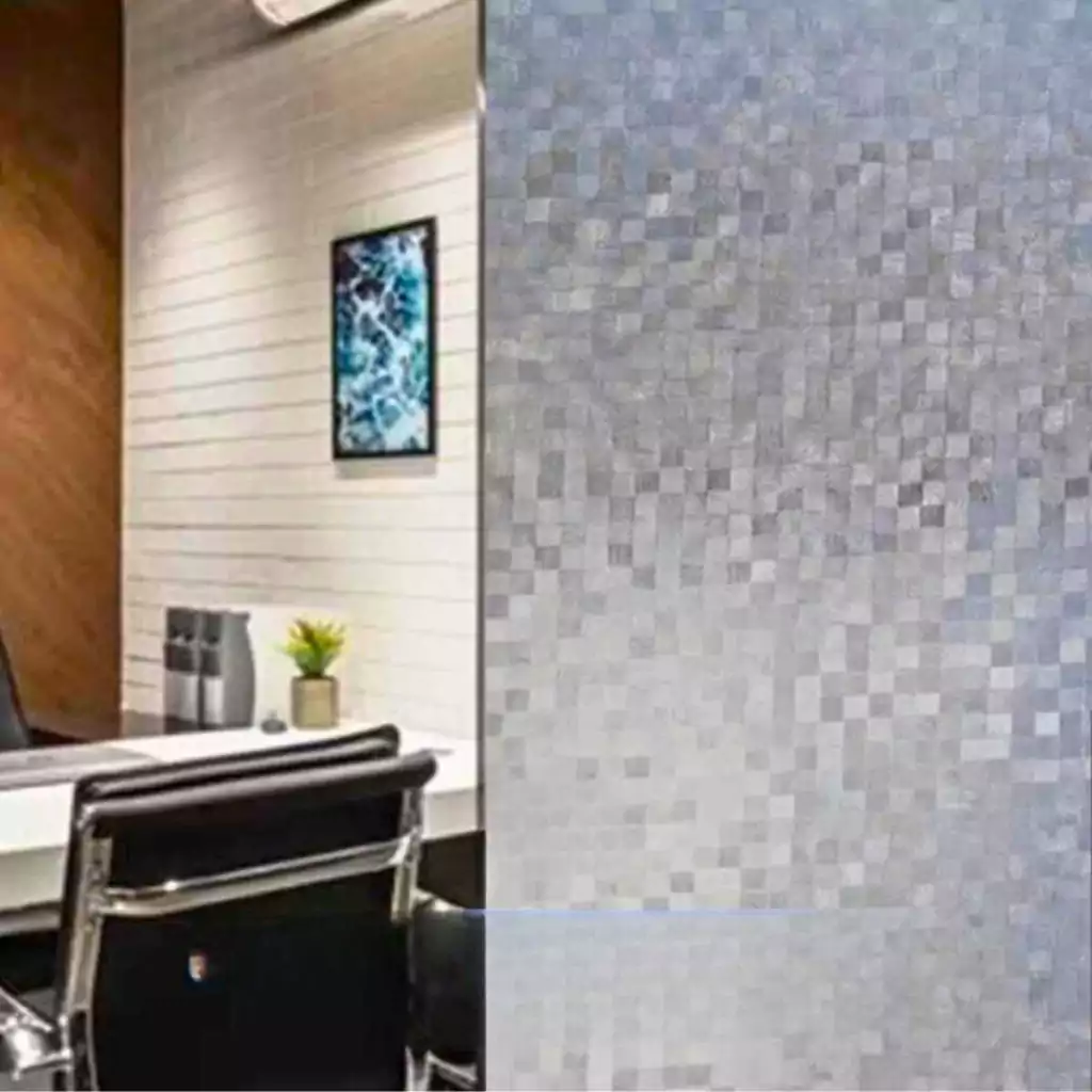 Papel de parede adesivo vinílico que possui texturas e efeitos conhecidos como “vidro fantasia” que difundi a luz direta. Produto prático e criativo podendo transformar totalmente o seu ambiente e decoração, residenciais quanto corporativos.