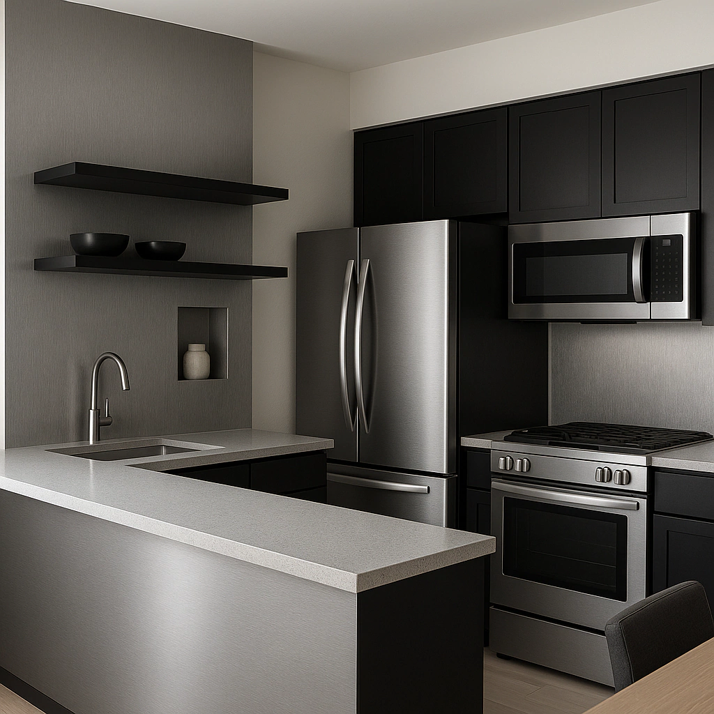 O Adesivo Premium Aço Escovado é ideal para renovar superfícies lisas com um visual moderno e sofisticado. Perfeito para móveis, paredes, portas, eletrodomésticos e projetos de decoração em geral, oferece acabamento metálico que simula o aço escovado real, valorizando o ambiente com elegância.