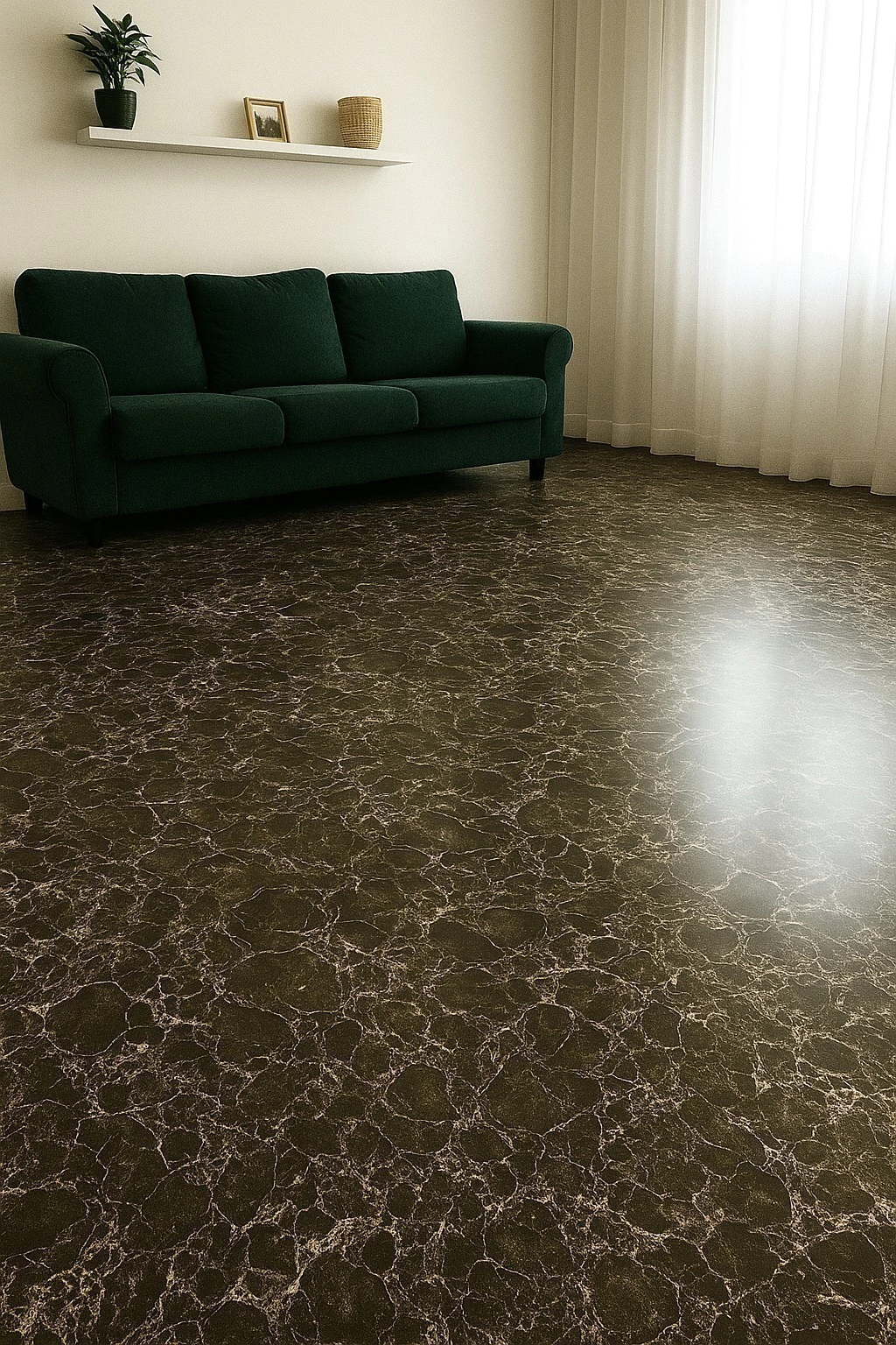 O Alia Piso Mármore Marrom Escuro 1,00m x 1,22m é ideal para revestir pisos, escadas e até paredes, proporcionando um acabamento sofisticado, com aparência de mármore, e fácil aplicação.