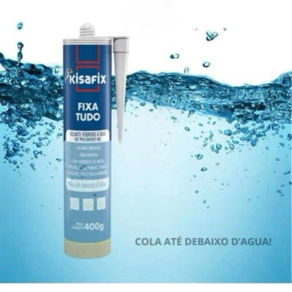 O Cola Adesivo Selante Fixa Tudo Kisafix 400g é um adesivo e selante monocomponente à base de polímero híbrido com silanos modificados, projetado para múltiplas aplicações de fixação e vedação. É ideal para uso em materiais porosos e não porosos, como metais, concreto, pedras, cerâmicas, vidro, policarbonato, PVC, alvenaria e madeira. Devido ao seu alto poder de adesão, é particularmente indicado para a fixação de espelhos e colagem de cubas, podendo ser usado em áreas internas e externas, inclusive debaixo d'água, e em locais sujeitos a vibrações.