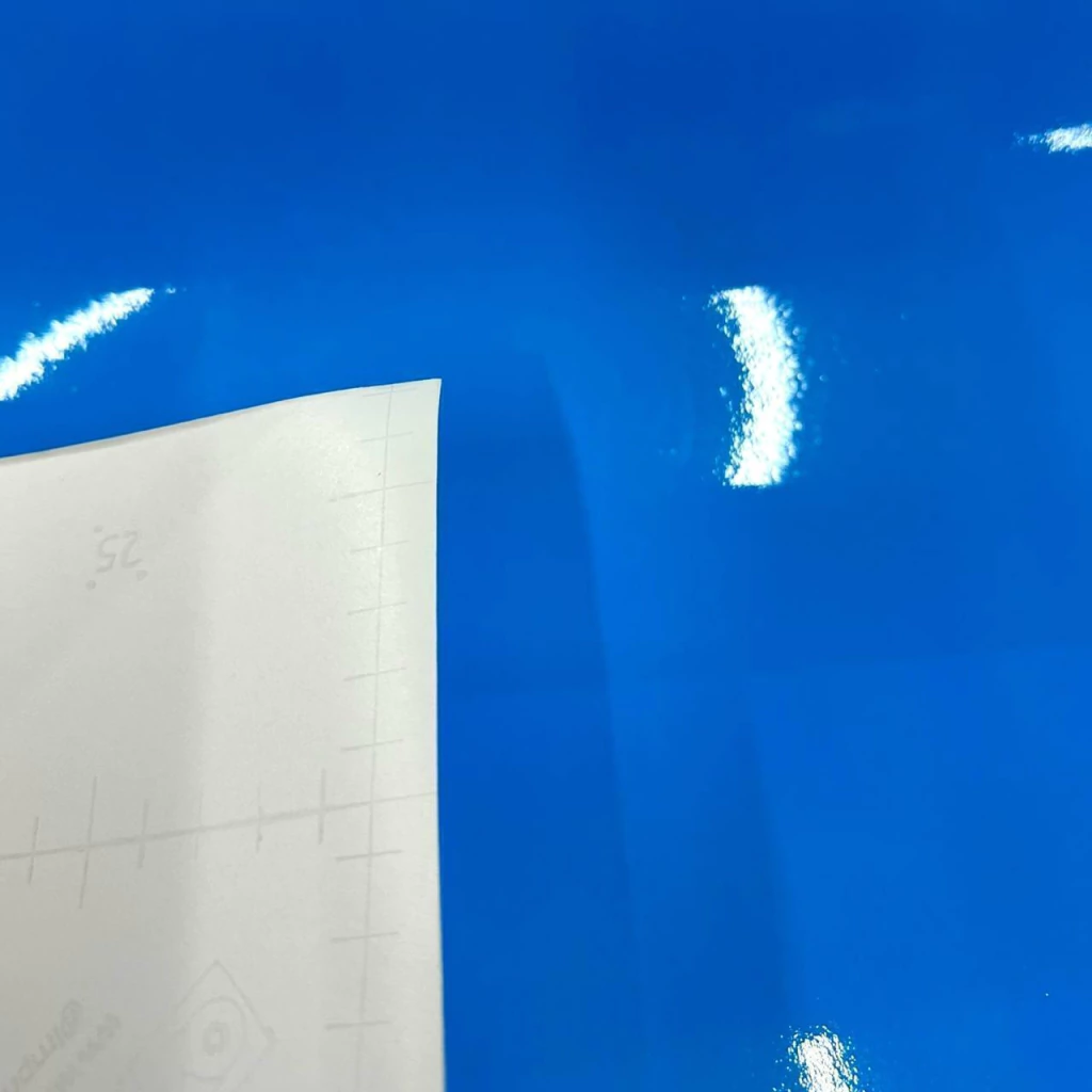 É uma película de PVC Transparente Azul, auto-adesivo utilizado na transferência de RECORTES de filmes na Comunicação Visual e também utilizado como protetor anti risco para produtos.